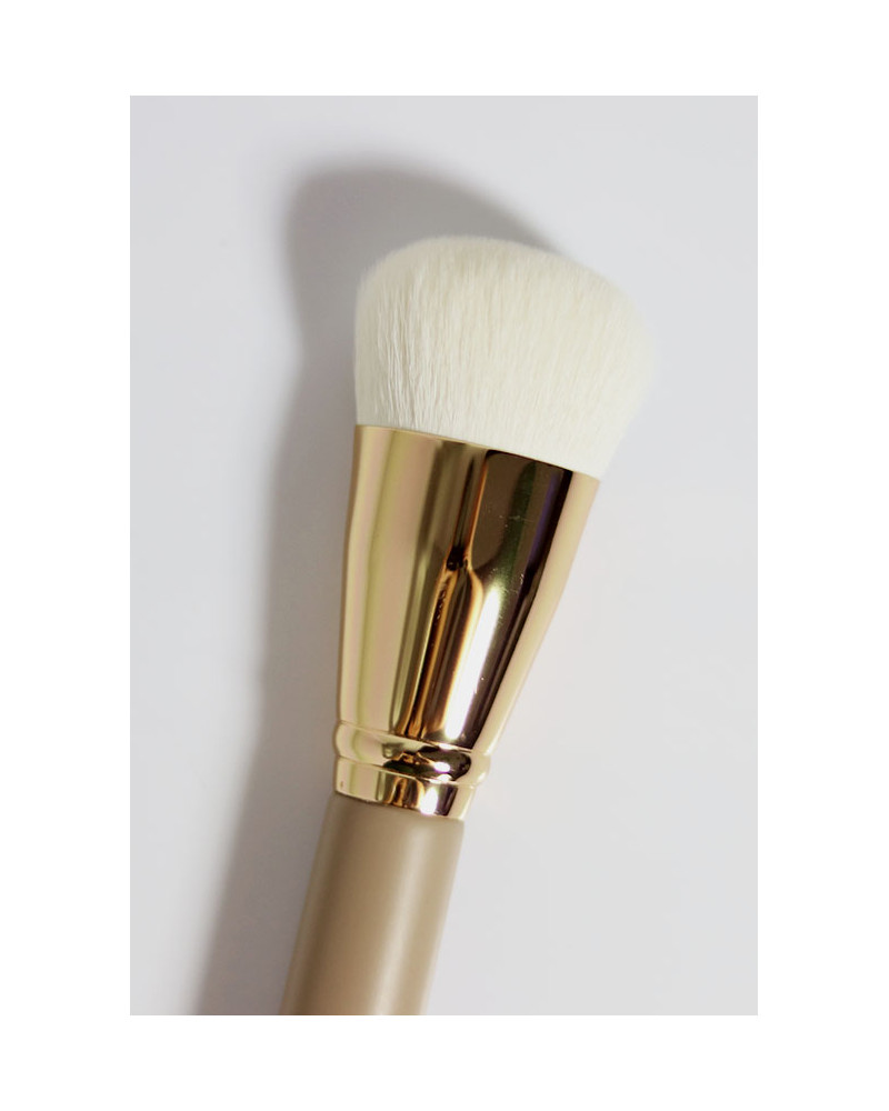 Zbity pędzel idealnie nadaje się do nakładania mokrych produktów - podkładu, różu lub konturowania na mokro.