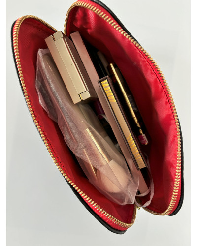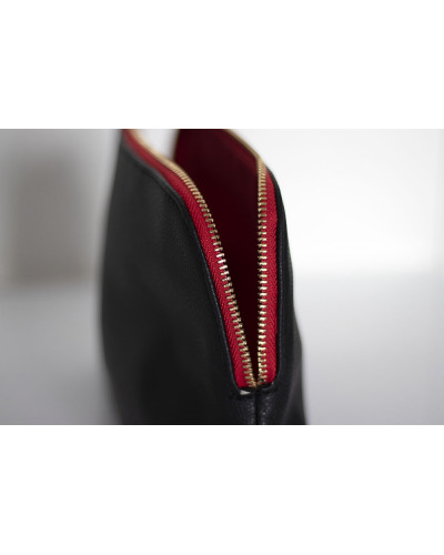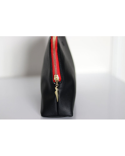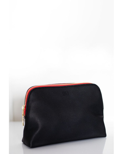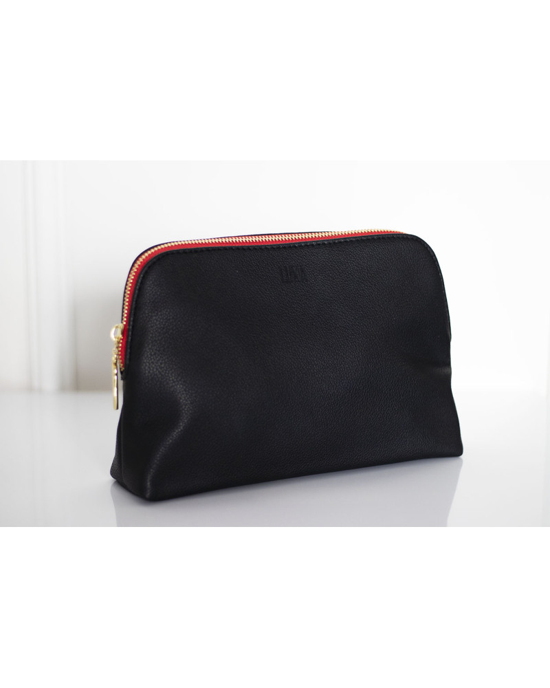 NOWOŚĆ ! Klasyczna miękka kosmetyczka, wykonana z eko skóry. Pomieści wszystkie niezbędne rzeczy podczas podróży, ale także świetnie wygląda w domu na łazienkowej półce. Suwak u góry. Z czerwoną, wodoodporną podszewką.